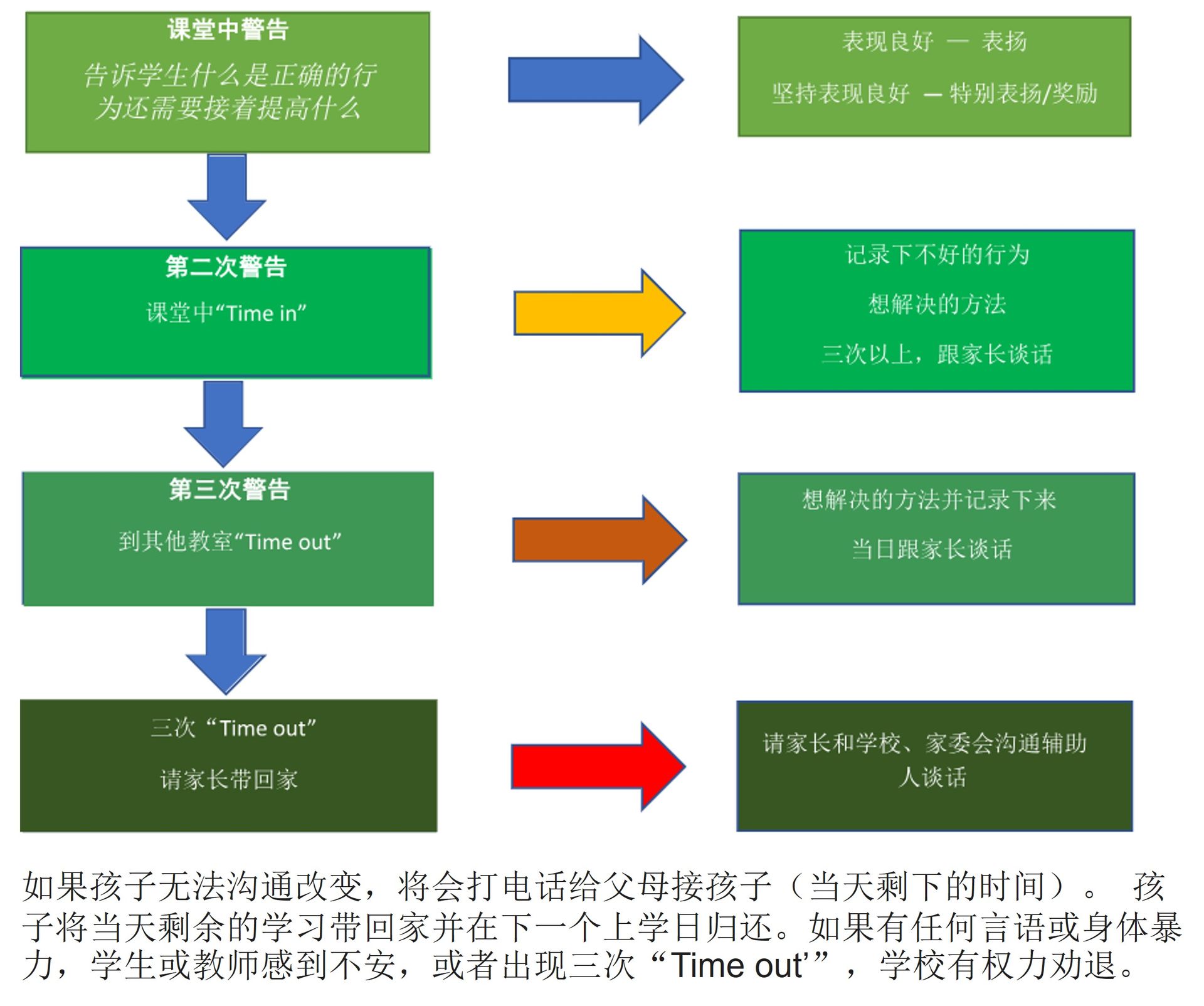 请与您的孩子一起阅读并引导您的孩子遵守学校各项纪律和规定:
